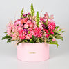Say to your dearest one you love her each and every year with this arrangement of mixed flowers in a pink round box.