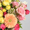 On a beautiful spring day, send cheerful vibes with this colorful arrangement of 6 Gerberas, 6 Poly Roses and a mix of other flowers in a basket.