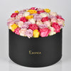 Share joyful wishes with your special someone with a trendy gift of 42 mixed roses in a round black box.